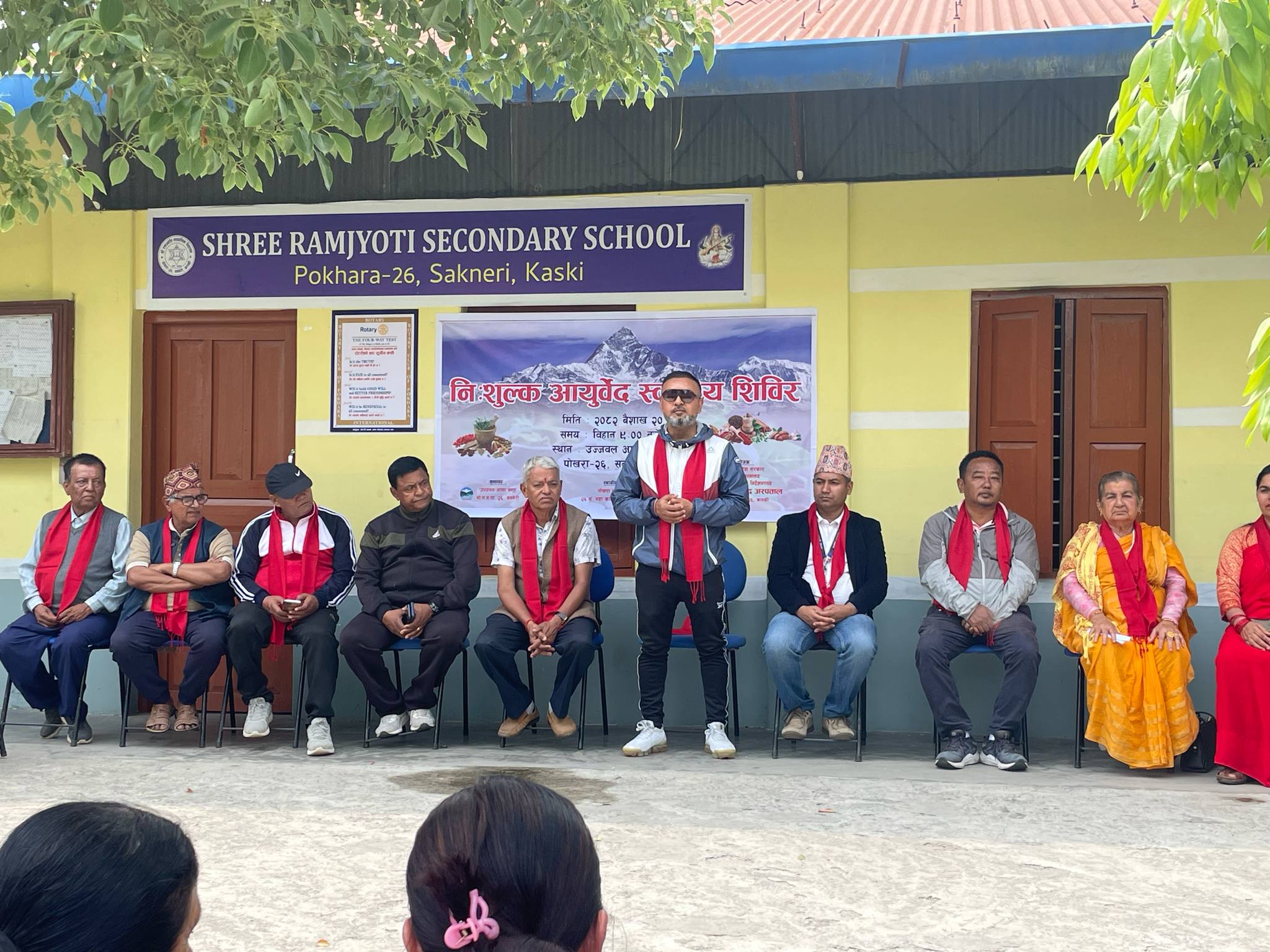 मिति २०८२ वैशाख २० गते शनिवार गण्डकी आयुर्वेद अस्पताल, कास्कीको आयोजनामा पोखरा महानगरपालिका वडा नं. २६ को रामज्योति मा.वि., सक्नेरीमा नि:शुल्क आयुर्वेद स्वास्थ्य शिविर सम्पन्न भयो। सक्नेरी युवा क्लब, लेखनाथ खानेपानी संस्थान, लोक संस्कृतिक समिति, उज्जवल आमा समुह, सक्नेरी बुद्ध आमा समुहको समन्यव रहेको सो नि:शुल्क आयुर्वेद स्वास्थ्य शिविरको स्थानीय आयोजक २६ नं. वडा कार्यालय, पोखरा महानगरपालिका रहेको थियो । २६ नं. वडा अध्यक्ष श्री नरेन्द्र थापा ज्यूको प्रमुख आतिथ्यतामा सम्पन्न सो शिविर, गण्डकी आयुर्वेद अस्पताल प्रमुख डा. शंकर गौतम ज्यूको अध्यक्षता एवं नेतृत्व गर्नु भएको चिकित्सकीय टोलीमा डा. दीक्षा पौडेल, डा. किरण कमल बस्ताकोटी, डा. नारायण पाण्डे, डा. शुभाष भुजेल, डा. बिपिन बन्धु आचार्य, डा. अर्जुन सापकोटा रहनु भएको थियो । जम्मा ४०४ जनाले निःशुल्क स्वास्थ्य परीक्षण गरी नि:शुल्क औषधि प्राप्त गर्नु भएको सो शिविरमा १२६ जनाको निःशुल्क सुगर र पिसाव परिक्षण, साथै ३२ जनाको एकांग स्नेहन स्वेदन एवं २ जनाको कपिंग सेवा पनि प्रदान गरिएको थियो।